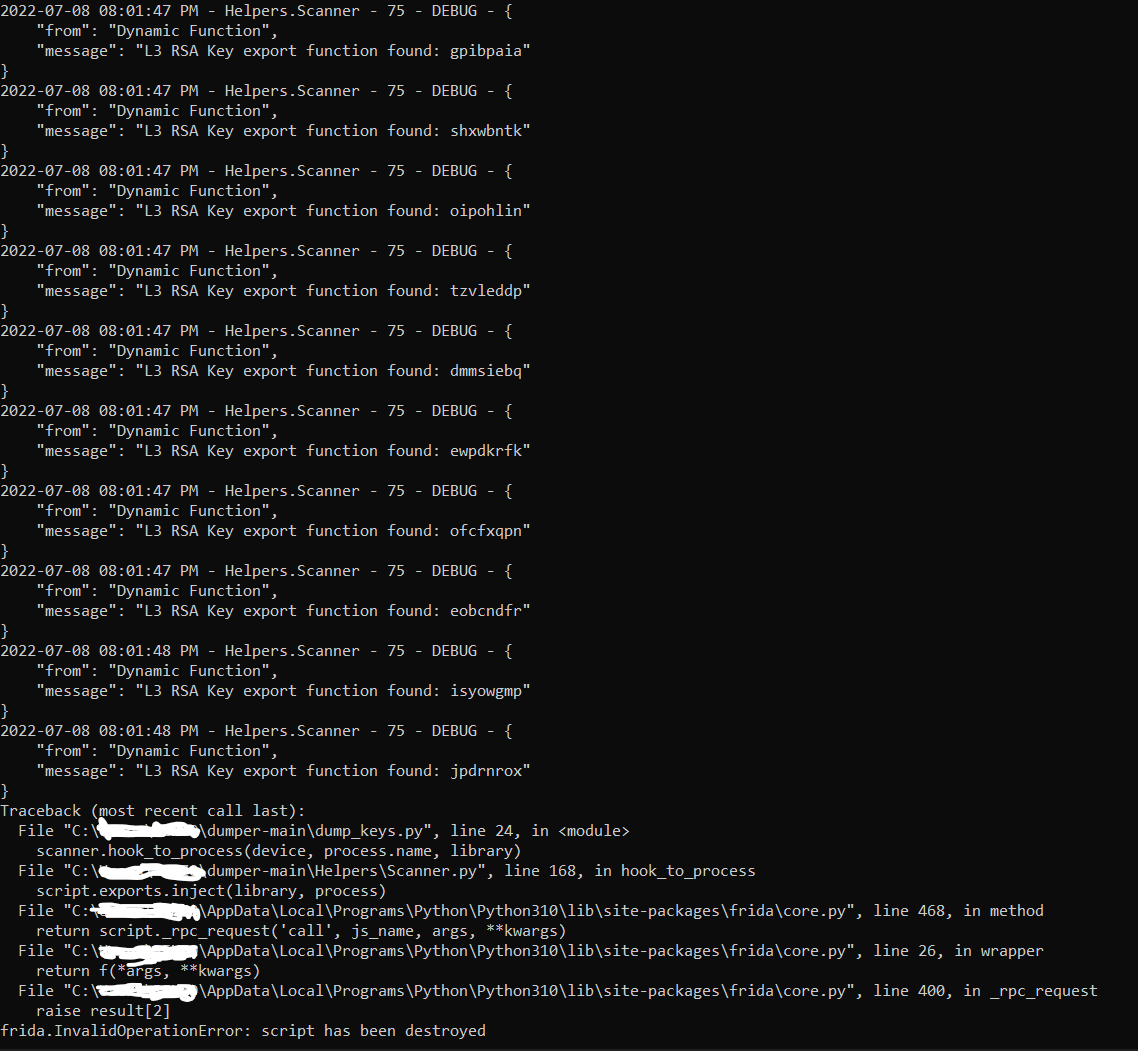 After editing it, try again with cmd and this came out executing the dump_keys script without reproducing anything yet:const KNOWN_DYNAMIC_FUNC = ['ulns', 'ayhdibat', 'dmmsiebq', 'eobcndfr', 'ewpdkrfk', 'fniukbqf', 'gnftsluk', 'gpibpaia', 'hiseddqu', 'isyowgmp', 'jmpmhuxl', 'jpdrnrox', 'nqfnfdzo', 'ofcfxqpn', 'oipohlin', 'pwunvoqt', 'qvvmsfbu', 'shxwbntk', 'tzvleddp', 'utdmsvht', 'vfmxioyc', 'wfhamgxt']