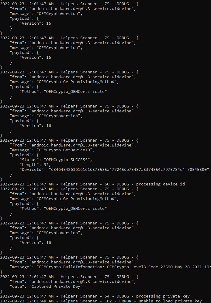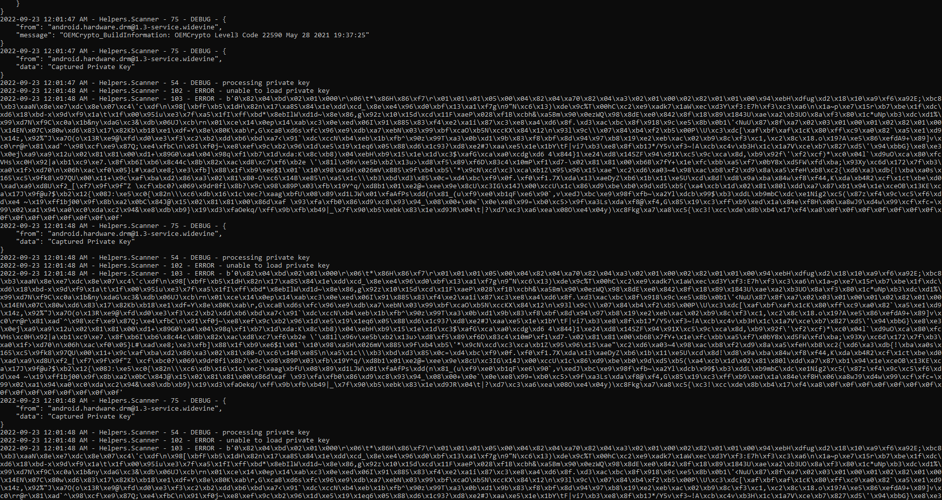 Good evening, I wanted to comment on the error that is happening to me when extracting the keys from a cdm L3, these are the DRM specifications: