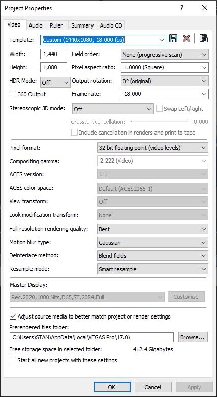 The video captured by the device is 20fps. First I'm using FFMPEG to get correct frame rate without re-encoding. Next I'm importing into Vegas 17 and setting resolution to 1440x1080 progressive, PAR to .9091, frame rate to 16 or 18 depending on 8MM or Super 8MM. Then in Video Event FX changing Maintain Aspect Ratio to NO. This gives me a 4x3 square video.