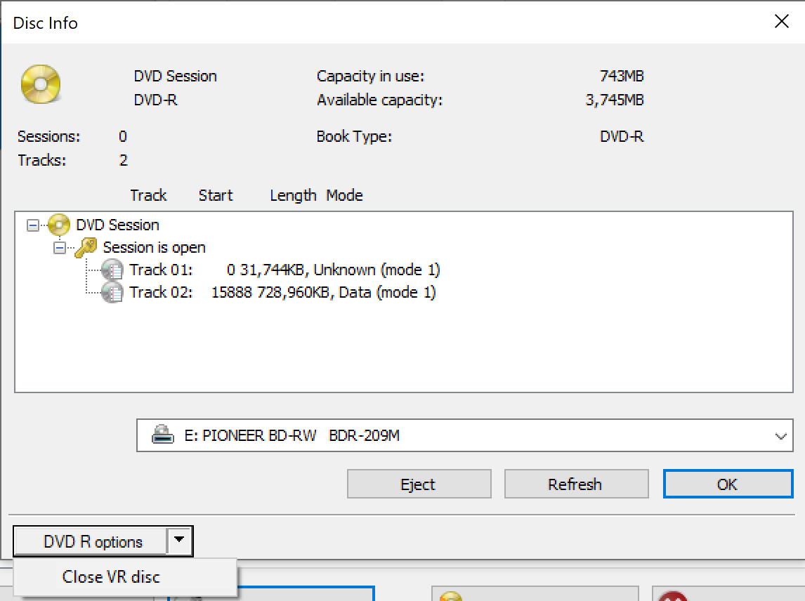 I tried, "closing" the (disk/session) with the option at the bottom left hand corner that reads, "Close VR disc". When I choose that option, Nero then goes to another screen, and I get a progression slider that always only gets up to about 2, or 5 percent, and then the disk gets ejected. Nero failed at closing the (disk/session) because if I push the disk back in, and restart Nero, Nero continues to give me the option to, "Close VR disc".