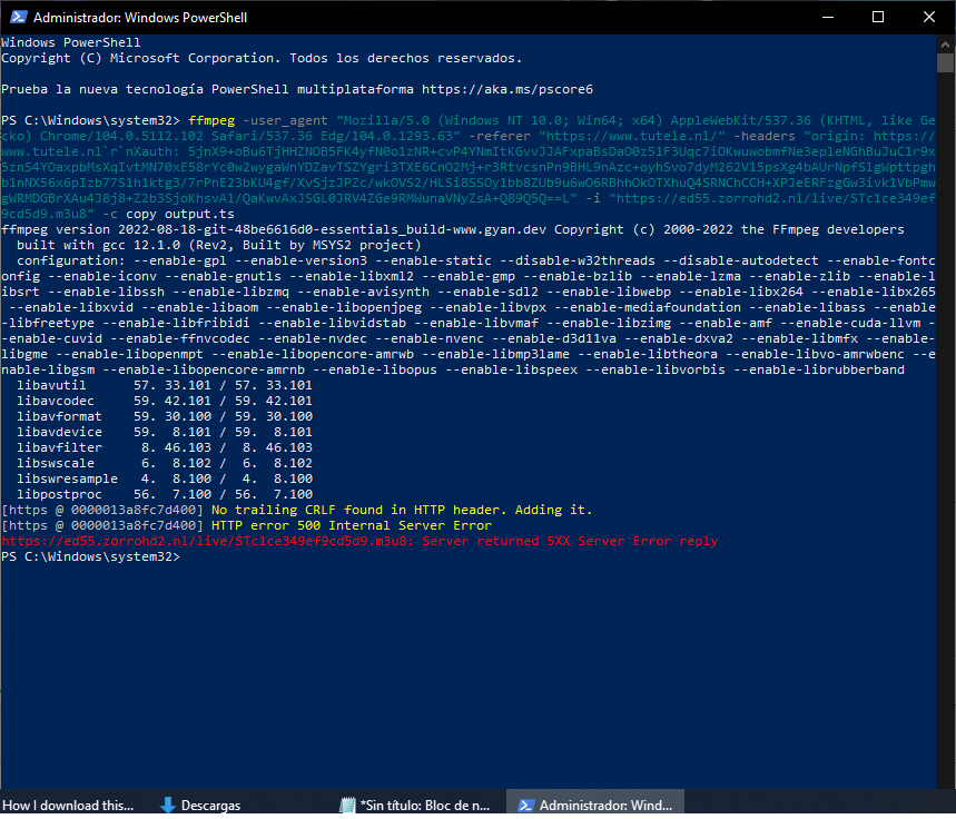 [https @ 0000013a8fc7d400] HTTP error 500 Internal Server Error