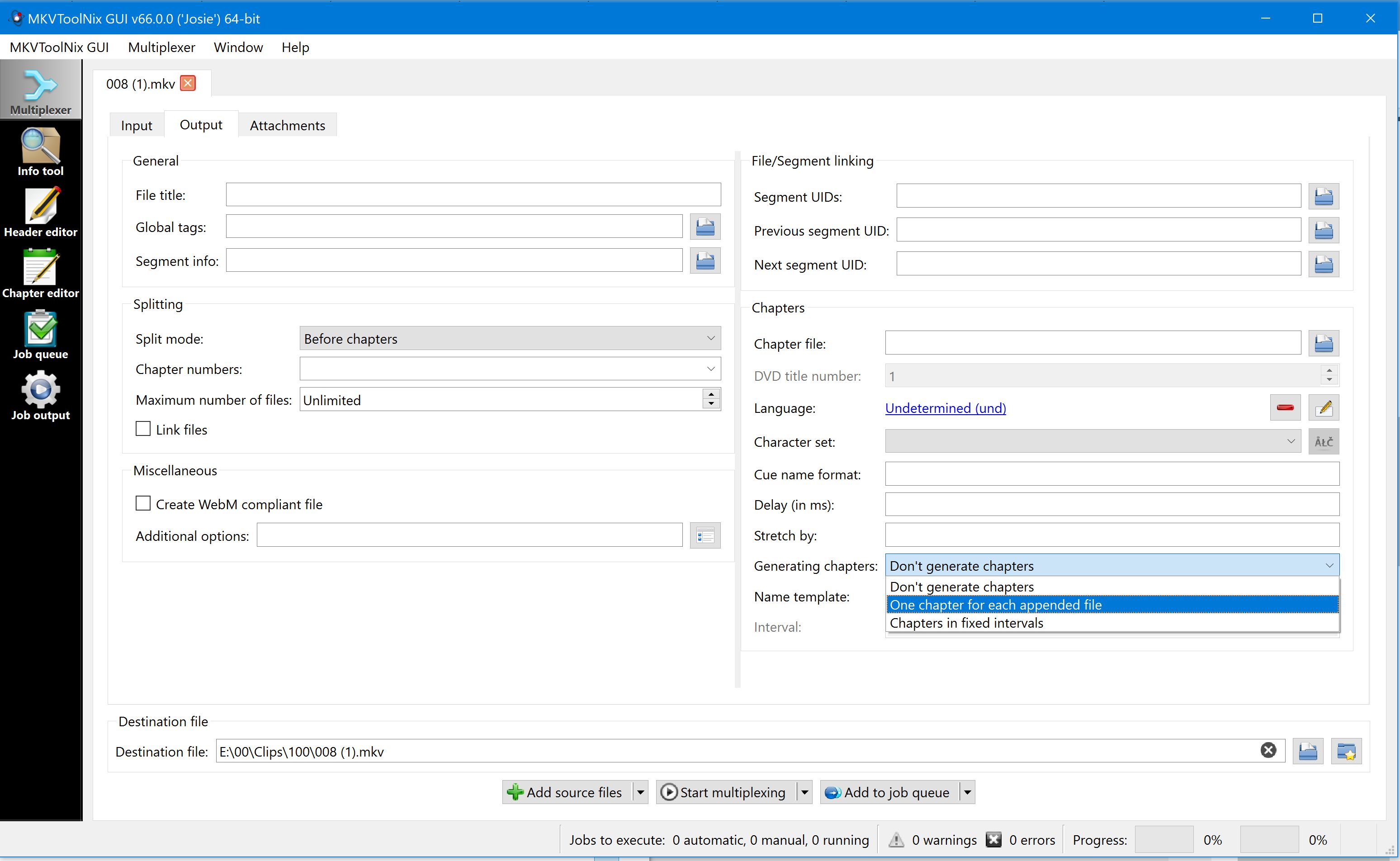 Request MKVToolNix GUI popup "adding or appending files" dialog explanation