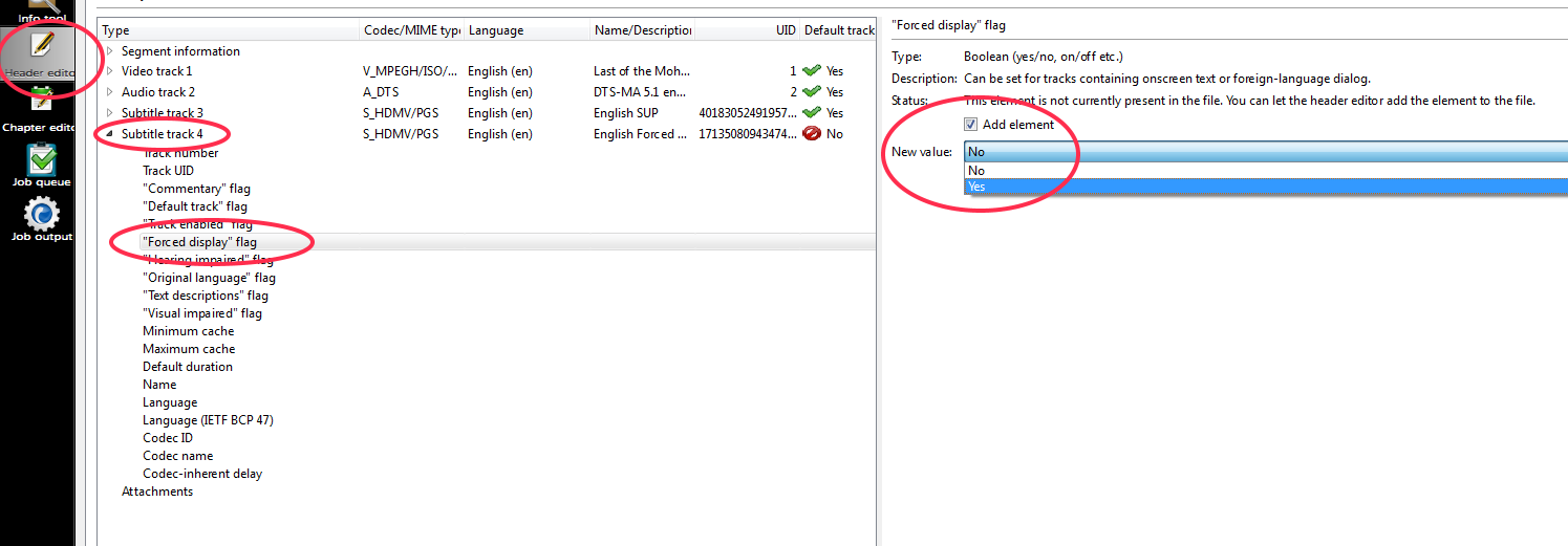 Right now I need to open each .mkv, then select subtitle, set "Forced display" flag > Yes.