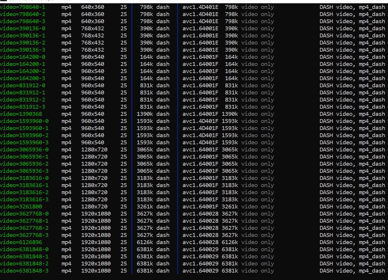 Hi, ok I finally found the various formats of the mpd by doing the --allow-u -F command:
