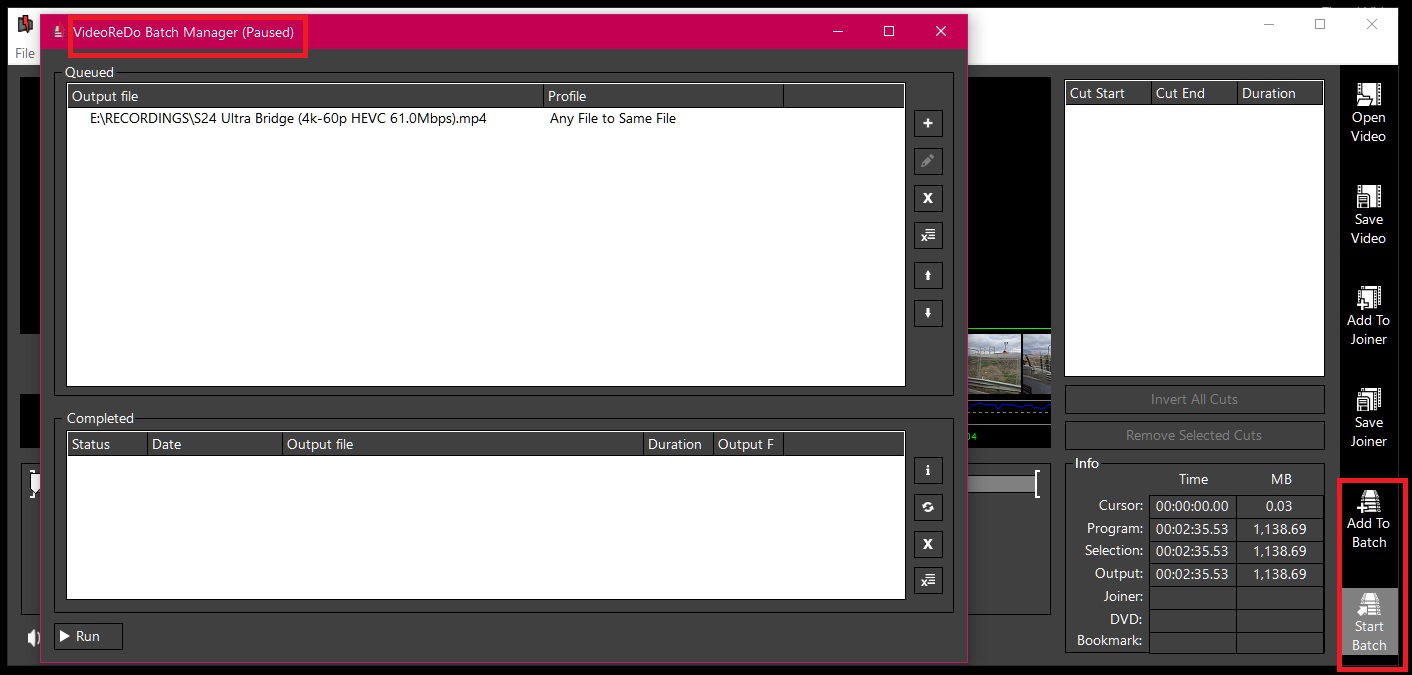 I use my Batch tool almost every other day, and just today i ran 35 short 4k/60p HEVC files thru the Batch tool to Recode them to 1080/60p HEVC format for a former client of mine, most were 3 to 4 minutes duration, it took 7 hours in VRD using software encoding, i could have done it a lot faster if i used Hardware QSV or NVEnc via my 2 graphics chips.