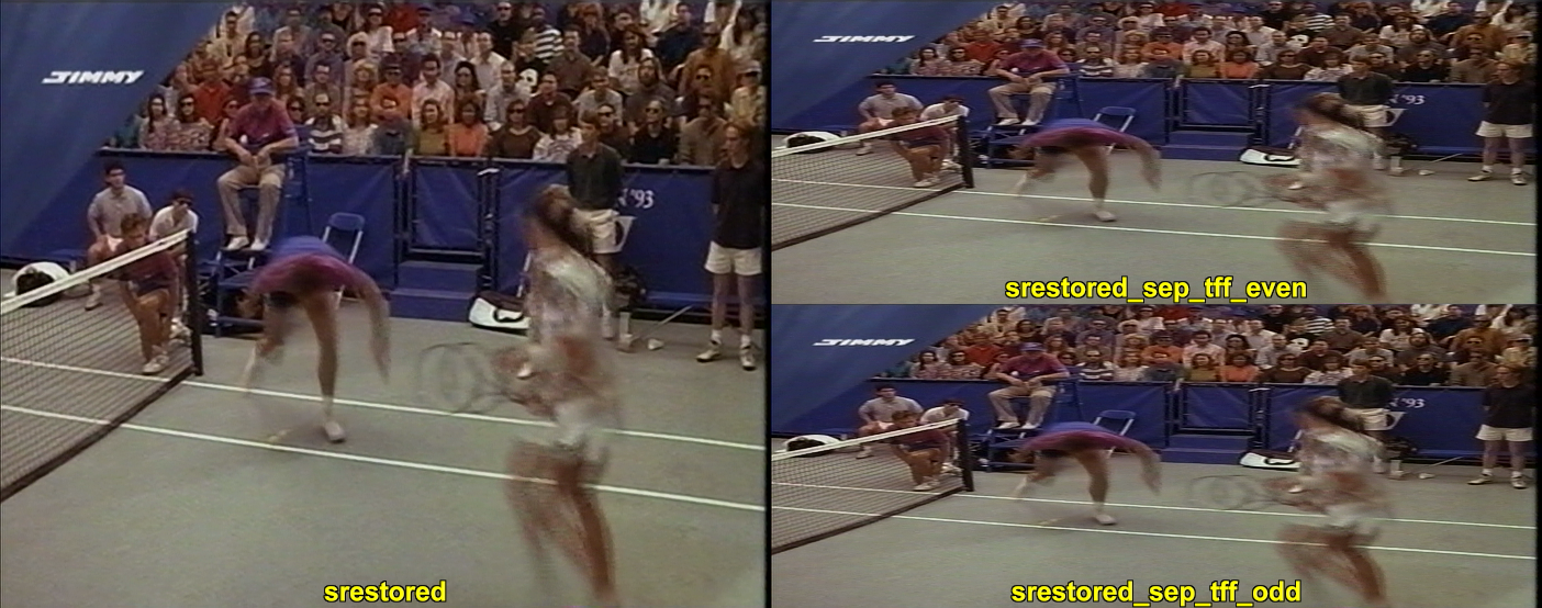 Keep in mind that SRestore may take a while to lock into the clear/blend pattern. If you just seek around in an editor it may not give clean results. Seek about 30 frames back and step forward frame by frame until you get to the frame you want to check. -