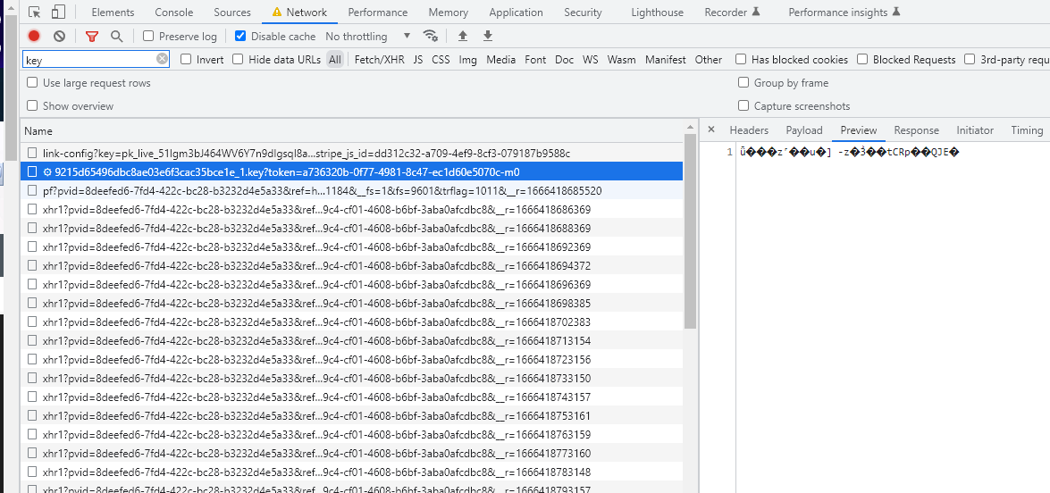 But if you look at the network tab the key is 32 bytes which is not a actual key for decyption