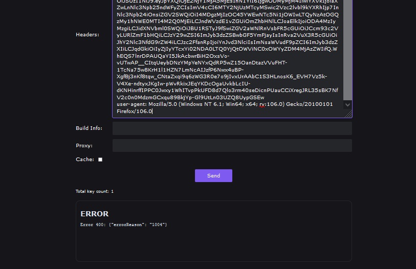 1) May i know what does it mean by error "400: ("errorReason": "1004")?