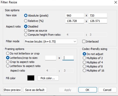 Should I still be cropping to 692x560, and then resizing to 960x720? Im also not sure about what numbers to put into the letterbox/crop to size boxes?