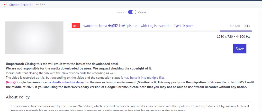 use Stream Recorder - download HLS as MP4 ext for chrome