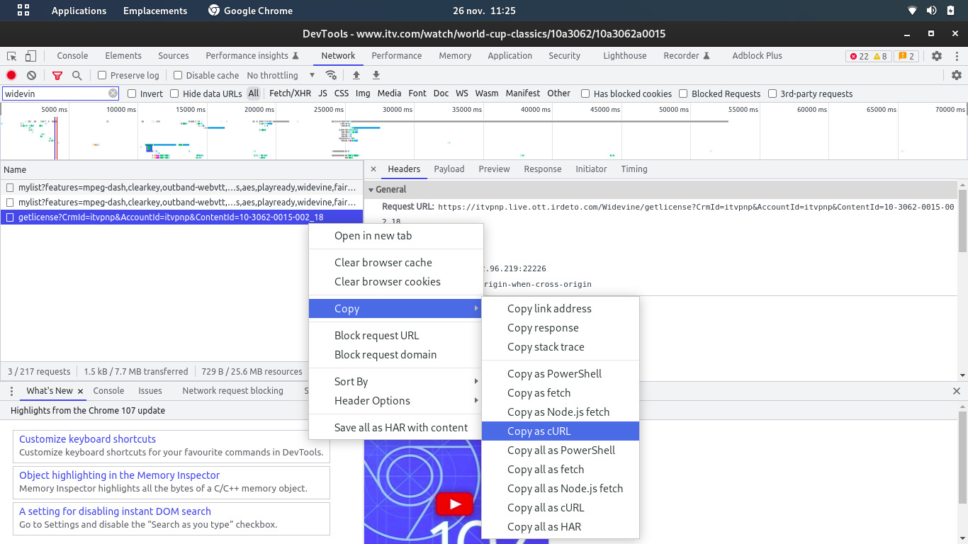 Although headers prints with orderedDict in front of it, and not at all in normal guise, it works as intended when referenced in a program.Code:import pyperclip as PC import json import uncurl from collections import OrderedDict ### use this example for your test curl in clipboard ### ''' curl 'https://widevine.entitlement.eu.theplatform.com/wv/web/ModularDrm?token=eyJhbGciOiJSUzUxMiJ9.eyJzdWIiOiJydGUtcHJkLXByZC10cnQvYW5vbnltb3VzX25ncnBfcGxheWVyQHJ0ZS5pZSIsImlzcyI6IjEiLCJleHAiOjE2NzI5MzQ2MTQsImlhdCI6MTY3Mjg0ODIxNDg1NSwianRpIjoiOTg2NGRkMWMtODEzOC00ZDQ1LTlhZmYtNmI0NWZhODY5YmE1IiwiZGlkIjoicnRlLXByZC1wcmQtdHJ0IiwidW5tIjoiYW5vbnltb3VzX25ncnBfcGxheWVyQHJ0ZS5pZSIsImN0eCI6IntcInVzZXJOYW1lXCI6XCJhbm9ueW1vdXNfbmdycF9wbGF5ZXJAcnRlLmllXCJ9XG4iLCJvaWQiOiIyNzAwODk0MDAxIn0.fIbo_FwSou5QdvhyocV5CApcWG24eEkGLH82R2_rW080ERqQi46BB5e-zGAbWjJKtKXWJGFW8lZKKcerdh9rdt8avBp6dlrWBCXCTcSYafY7LCGPlaVeLF_DJkfnl56-92VQ0e7RbJNki_bwe3F8o0GsdUfjwHihT0P9z38C3xnzTz5l_mVFo4Fz6OMYCfQSavDeA-Qn5fcOs3s-tCNUHBJHH4wdSXtoaq48iwgx2z_HAuk-SiMWTL8IORm3APty5WWcFMZH2jt0Vop2kWIXeVZ70tJlXeFHa98pdCS1P2jB77LGP6wNciAVn_uRRCvDDo37Tys8skuoTxQ4rMNLJA&account=http%3A%2F%2Faccess.auth.theplatform.com%2Fdata%2FAccount%2F2700894001&form=json&schema=1.0' -X POST -H 'User-Agent: Mozilla/5.0 (X11; Linux x86_64; rv:108.0) Gecko/20100101 Firefox/108.0' -H 'Accept: */*' -H 'Accept-Language: en-GB,en;q=0.5' -H 'Accept-Encoding: gzip, deflate, br' -H 'content-type: text/plain;charset=UTF-8' -H 'Origin: https://www.rte.ie' -H 'DNT: 1' -H 'Connection: keep-alive' -H 'Sec-Fetch-Dest: empty' -H 'Sec-Fetch-Mode: cors' -H 'Sec-Fetch-Site: cross-site' --data-raw '{"getWidevineLicense":{"releasePid":"YLDhwOrcAYBq","widevineChallenge":"CAESiAwKnwsIARKDCgrDAggCEhBPAX6pprWp8j53Fd35KshWGMDhp5kGIowBMIGJAoGBANLd7vXoVJSWU6a/XZWpkDF4+AUqm9/V8PCt0NKhzJLy20ocn9JXudpAyCH/3/Mvr+uBkN1M43tocH9R8Pi6v3JNxeinAfmjt0UznnVaWyEj05jLEKwWbOIqj/KHhITs1uCJ21JSRFDx+Qzh/FAQoFIgx9mnGKC/nhmwOscuwIWBAgMBAAEoq9QBSAFakQEKjAEwgYkCgYEA1YyoyKh3fE0J3OO+ReatC0pgMYIn3rssKzod33Yv2A79i5PtRdigCaajl2+cryM9z5snVMG43yRClQ4HqbqlG/VltplxG9+yWLLOhejjSP/x7GLKuMJrfWwgoNCeeTapU1ZZR9d627sV4q0wzIjjyulUWZtKrIYR9YIUBDFwGv8CAwEAARABEoACXIMYFTjDcVLmdzL55t8mUNKkrub9YVm+ZsQbD7ZUzxO55Pt6NUj88x5ar+vnlNjvyryNDkIJIZakHCuBIBDISB7OZAFuMM2FRtsxE8HC152LibPxKxnG0Ua25gSkp21CYvoV+r9YdUc4I7h+kMTfXZTnbxo2SwFMv5bnfO8+T5GGGqUa6E0FLCLPFqxbXjkyS5EDuTbfBR0CmHy94kQlnIbbyVJBtIFyEOuA7J7JmZ1rpgLuroAupHpoWcsnqUEXTRKKefPrCr+kJnuG1jGqeFteRjIRv9m7aOo8SqpQnrbbQw11dU+x53M0fmkZuCIt6RhNrcGI2g5948NB49cW6xq3BQqxAggBEhBTsaa6NPE5zLPYxokeymt4GJ/DkZcGIo4CMIIBCgKCAQEAx9tff4fuUrqE9SflOhXDGWBjQBi+BjHaT/XM1EhVOx4aN9hXDkFh0i19bF4ZMrP4YhsPO7IjwjVToYQjB8bh5SHFJhTd9gFxECgtLs+SZZrBRHRR3atbbn3bIQr/ugPHPGSKYs7l8jK3u7fS8F0i3bsgKM5CX/uehWB9zVMzTXpaKDDCfZePZf5IcWwpHVvaw6QBR+xcwxvDjpTF3biqhU5FnQHQxMaJU1VINzFOw8ueJB7gnZjrjsLeKlJEB0ShUq88QQLDFg1HWSg/2RARkVqJE1bb2p/gLqPfAw6wcUL3jFCQQ8kk9gTx39zrpNj9YWWqyhnWsjPxRNXd+bwT2wIDAQABKKvUAUgBEoADjuHYKWgIqxWdfluO6tTzLu5Bs6wCcWNxaoHSPOFIw7fc4lut3L0+YALX6/ER1lkfBPf1Qh2Dxo+e3u7l/cy95sx1pPqUpCCNkTsuN77STlUex2v5jukd8F+CaGAs+ZoWFtRV9dHvISBcuopb+dJo65IiNAMzEexScm5kMvALWODdVXd5UZ+wqodSrkXE2pW3kjUwEIYGgSdL2gAl2hDdguWidhPPGb6I1kQ0wYSFLkbzIMTftCBhUgwYC0fuU7ABzH7j5wm6hLmfOdLG5L5GZIluvX+NW84MHfITyrR5rrZzTMXBPTy1Cv/gbYLNU+FCXAG8Fx1fVTNxLf/UHJSJzUApOSlsJCdl0QQ6OA8UXDhV/Ug02Irar9yf53d8ODHrgTz+y2PP5lZj/hHLlwZYXCqTM2MKmAXU1IMRfNMGBkunUevAw8Ap5URQQaEsof6lVsFwVAroXv3x+Uq73Fs5yTww06wSiMpves3TgT5Q67xfeqi0DwjrIHXgGrzf5qy0GhsKEWFyY2hpdGVjdHVyZV9uYW1lEgZ4ODYtNjQaFgoMY29tcGFueV9uYW1lEgZHb29nbGUaFwoKbW9kZWxfbmFtZRIJQ2hyb21lQ0RNGhYKDXBsYXRmb3JtX25hbWUSBUxpbnV4GiMKFHdpZGV2aW5lX2NkbV92ZXJzaW9uEgs0LjEwLjI1NTcuMDIKCAAQABgBIAAoEBJUClIKPAgBEhCKmqFwEdOQer2NJTP5C1xPGgh1c3AtY2VuYyIYaXBxaGNCSFRrSHE5alNVeitRdGNUdz09KgAyABABGhD7p7rD0gvS2KQeQ/UzkpGlGAEgi8fWnQYwFTi+h4OyAhqAAQwEfmXXrps47Tq1gBjMW8QEWfNKOyg2xexIvkiOifL7kPBAX4uBxTqZ8tYb5RL5Ldqsn+PQ6WK7YbVgAA+mDgrgsHgbQKj6mp0UhIKL+dsWzgq6pk9cfD7WsbsYqcH0aZI15CIbnG9GClmV7HWWi/m9OD69Wyh5NiOtcztLxicDShQAAAABAAAAFAAFABAmQMO+1dir3w=="}}' ''' mycode = PC.paste() context = uncurl.parse_context(mycode) license = context.url print(license) print() #data = context.data #print(data) myjson = json.loads(context.data) releasePID = (myjson['getWidevineLicense']['releasePid']) print(f"releasePid {releasePID}") print() headers = context.headers print(headers)Last edited by A_n_g_e_l_a; 4th Jan 2023 at 12:22. Reason: duplication