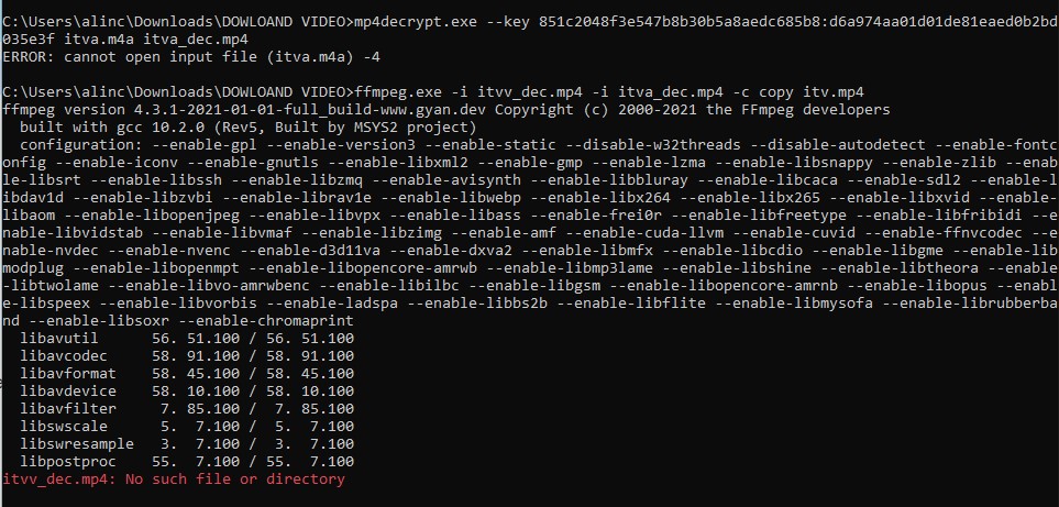 The error is actually before that. The mp4decrypt command can't find the itva.m4a encrypted file.