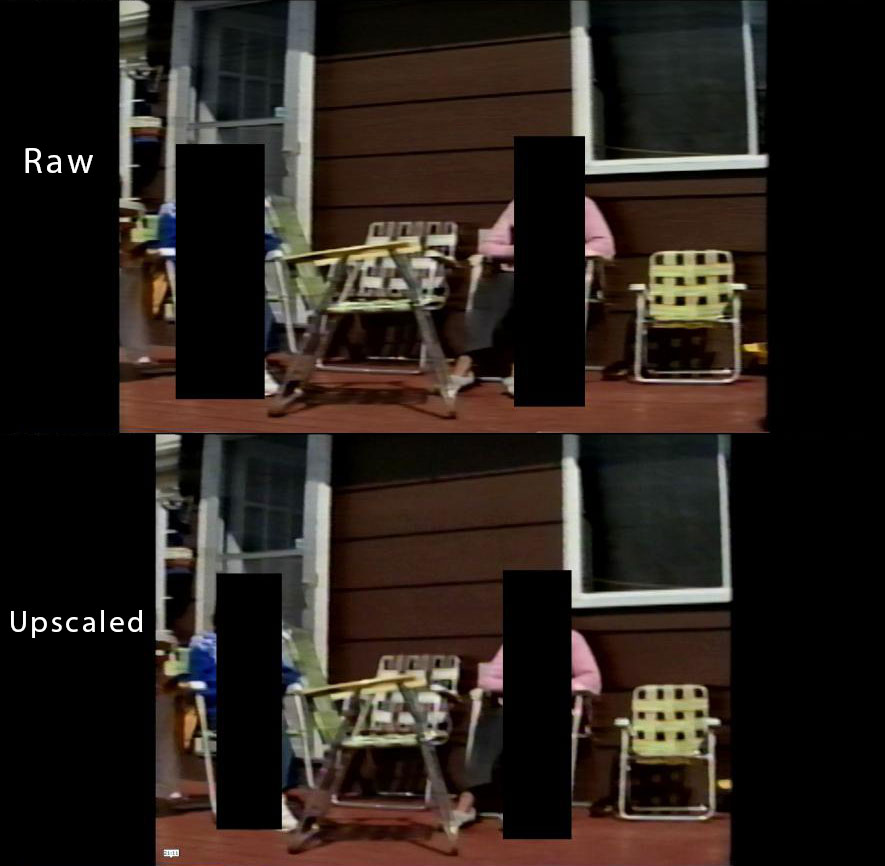 I'm reading everywhere that the likely best method is to take the 720x480 (3:2) capture files I did and de-interlace and upscale them to a more modern display friendly format like 1920x1440 (4:3). That way if someone is trying to play them on a device with garbage upscaling ability, it's not a concern. When I do this, I get a result which is pretty clearly squished horizontally compared to the original captures.