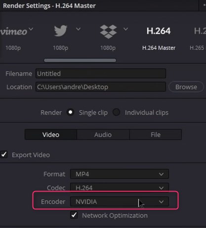 Is the option "Encoder" in the export video settings only available in the Pro version?