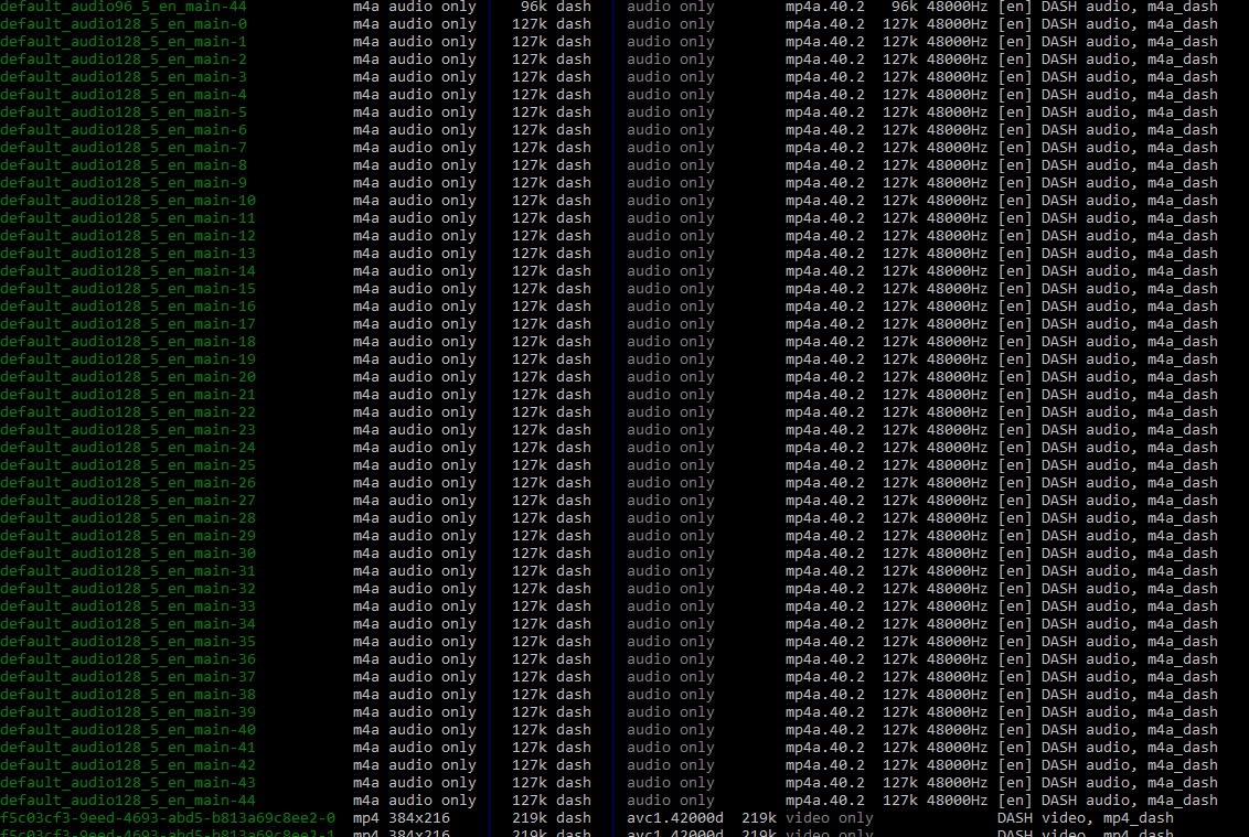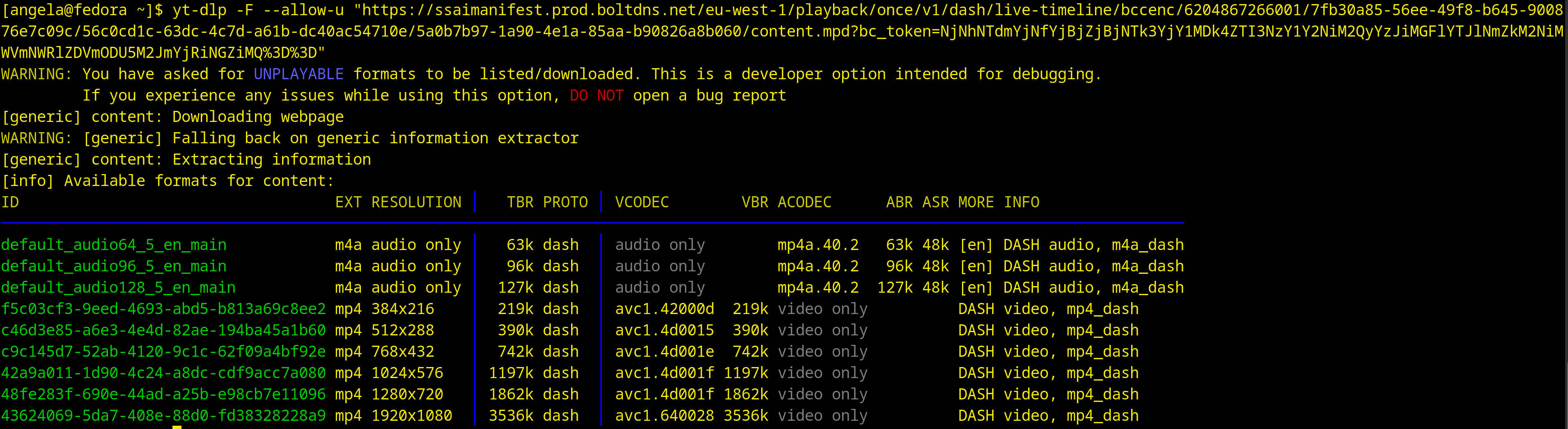 AND if you take the contenturi (MPD) therein and give that to yt-dlp you get a download with single audio + video and no-adverts Who'd have thought it?