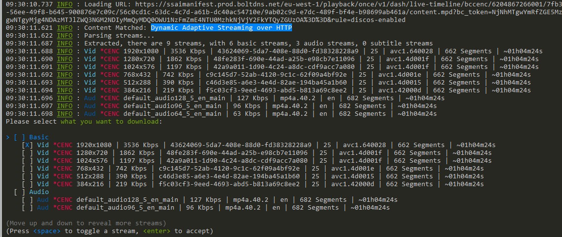 (where re is abbreviation of N_m3u8DL-RE)Code:re -M format=mkv --key bb61081e2c7e46128907e440dc0708da:2d902a60abb49d8775c528c1a57b2e25 "https://ssaimanifest.prod.boltdns.net/eu-west-1/playback/once/v1/dash/live-timeline/bccenc/6204867266001/7fb30a85-56ee-49f8-b645-900876e7c09c/56c0cd1c-63dc-4c7d-a61b-dc40ac54710e/9ab02c9d-e7dc-489f-bf4e-b98699ab461a/content.mpd?bc_token=NjNhMTgwYmRfZGE5MzY4MjgwNTgyMjg4NDAzMTJlZWQ3NGM2NDIyMmQyMDQ0OWU1NzFmZmE4NTU0MzhkNjVjY2FkYTQyZGUzOA%3D%3D&rule=discos-enabled" --save-name insouponnable_ep01