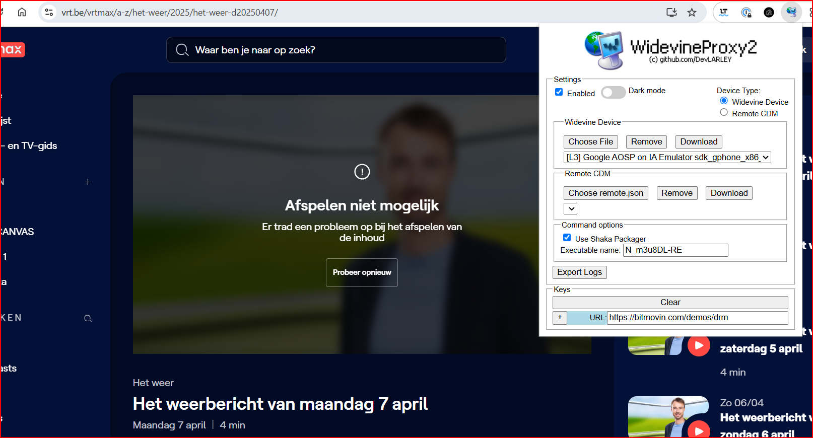 4. try WidevineProxy2 with another browser...because it works for Vrt Max