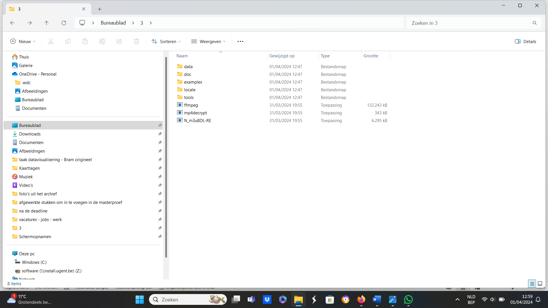 This is a code that you put in cmd or command prompt. When you are inside the folder where the 3 tools you downloaded are, just go to the address bar above and type cmd and press enter. It will open the command prompt.Code:N_m3u8DL-RE --key e6c83af4f48b850ae3b8eced3ea32ba3:aa986877706b5955b131a80cd91b346d "https://remix.vrtcdn.be/content/vod/pl-c8bb635e-191d-4c9d-bcea-11400b8cc8fc/pl-c8bb635e-191d-4c9d-bcea-11400b8cc8fc_drm_29022c14-beb4-4072-845a-32e88726d5ce.ism/.mpd?filter=%28%21%28type%3D%3D%22audio%22%26%26FourCC%21%3D%22AACL%22%29%29" -M format=mp4