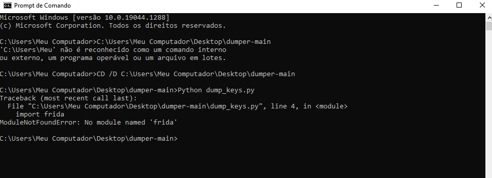 I managed to do almost all the procedure. But in the end it is giving this error when I run Dumper-main -