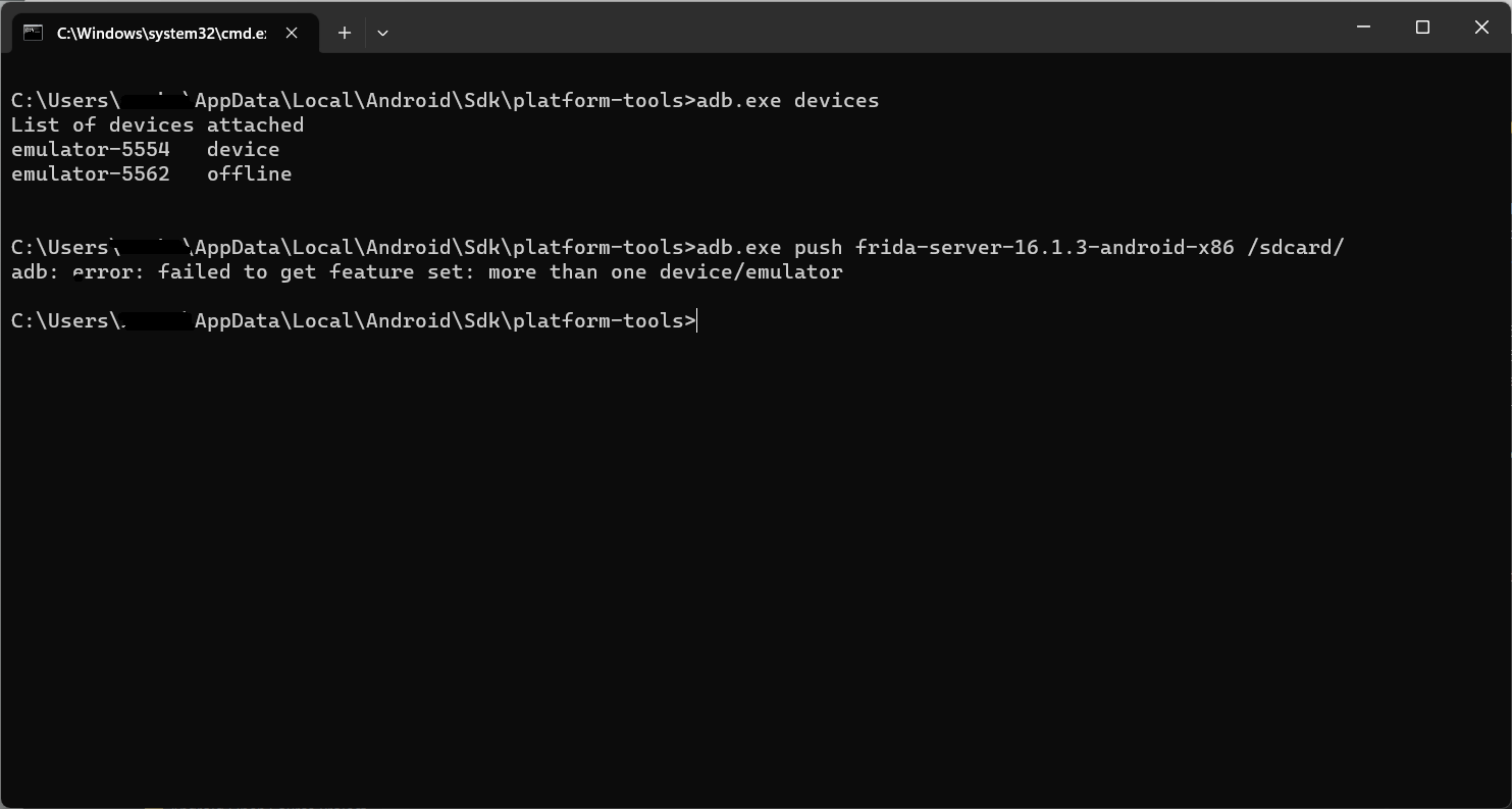 Code:adb.exe push frida-server-16.1.3-android-x86 /sdcard