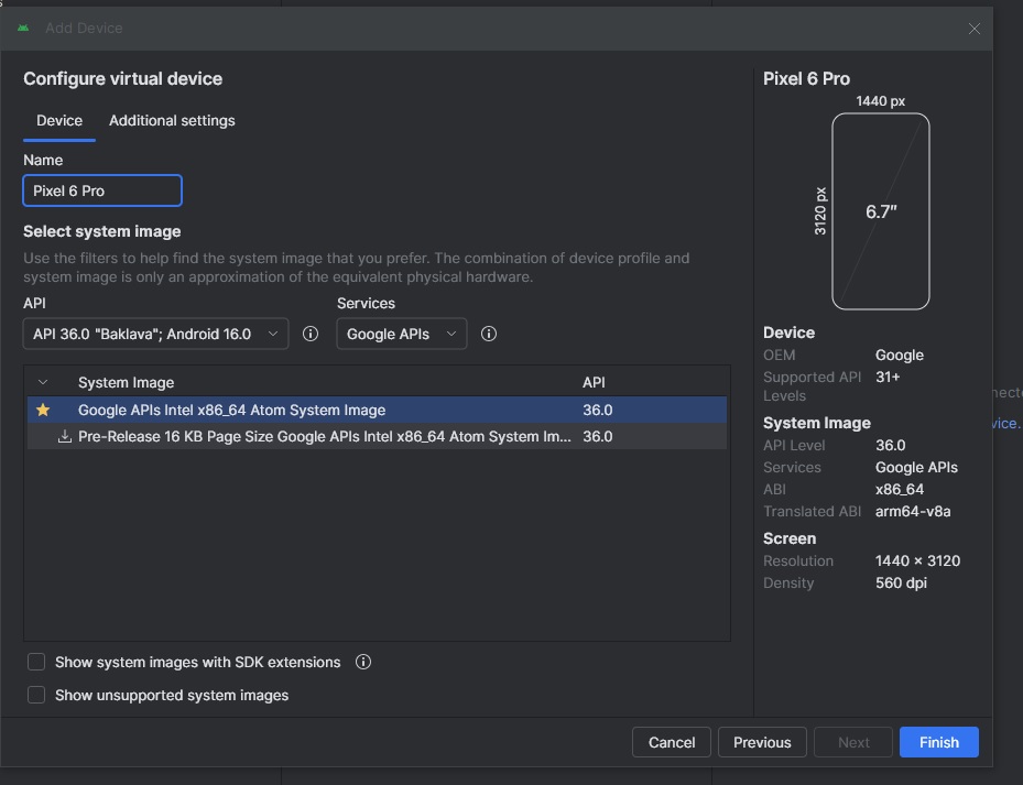 Sorry, if I select Pixel 9 can't select api 28 now, only 35 or higher.