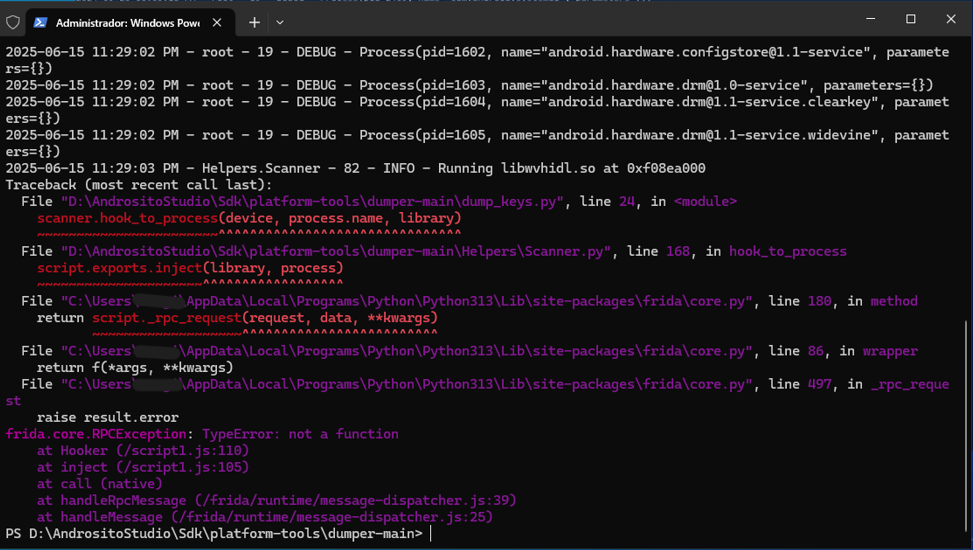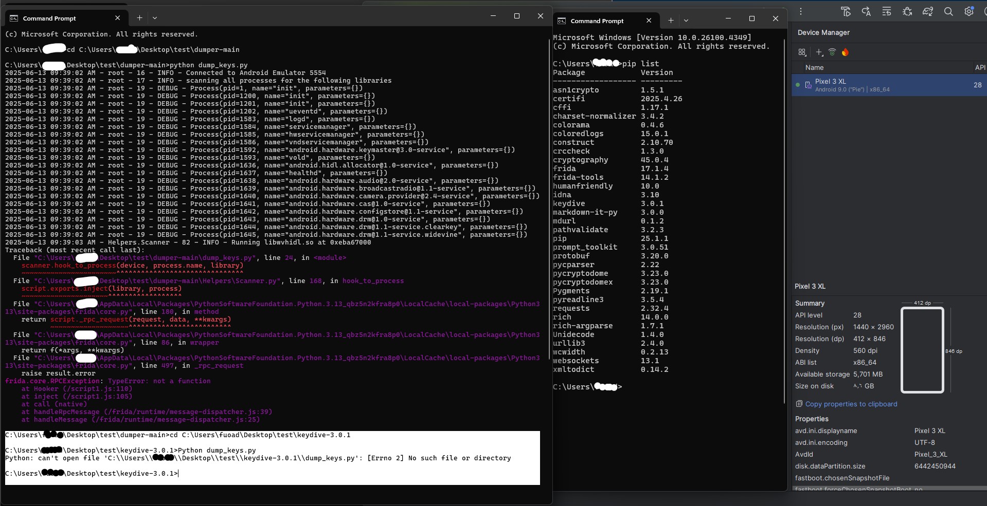 After that, everything worked fine and I was able to use the device without any issues. I followed the steps in the guide, but when I got to the end and ran "python dump_keys.py", I got the errors shown in the screenshot. The "hooks completed" message does not appear, and I cannot get the key_dumps folder.