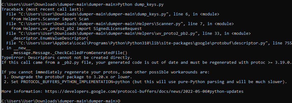 File "C:\-\dumper-main\Helpers\wv_proto2_pb2.py", line 33, in <module>