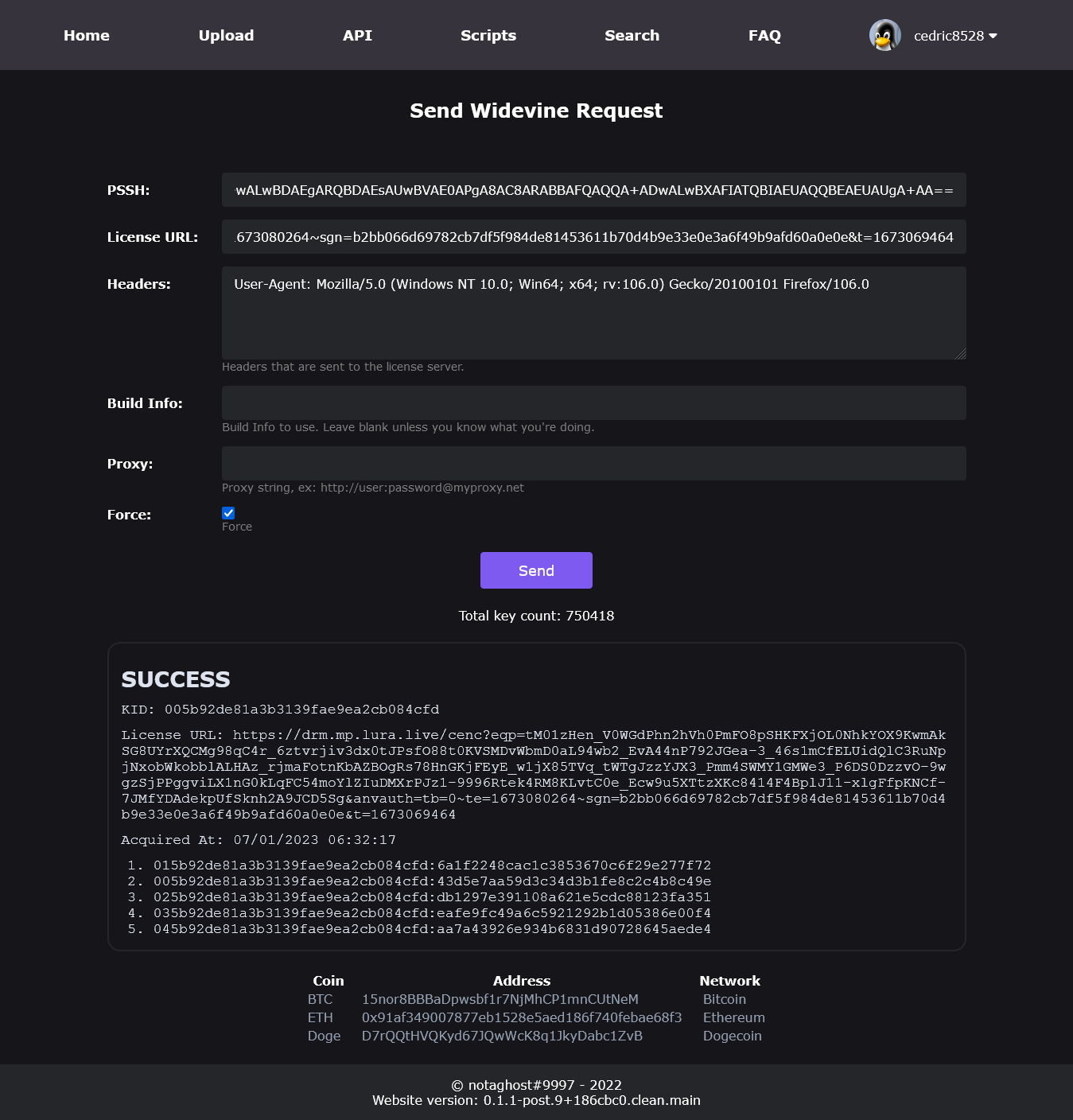 Thanks again for the support here. Really appreciated! I might dive into learning getting these keys myself, but I don't download a lot of video's. I buy most things I really love on Bluray if possible, but sometimes things are only available online, like these shows (2 of them were released on DVD and I have these, but these streams are a bit more high-res then the DVD's. The 3 other shows were never realeased on physical media).Code:N_m3u8DL-RE -M format=mp4 --key 015b92de81a3b3139fae9ea2cb084cfd:6a1f2248cac1c3853670c6f29e277f72 --key 005b92de81a3b3139fae9ea2cb084cfd:43d5e7aa59d3c34d3b1fe8c2c4b8c49e --key 025b92de81a3b3139fae9ea2cb084cfd:db1297e391108a621e5cdc88123fa351 -key etc... "https://dcs-vod.mp.lura.live/vod/p/manifest.mpd?encp=rcm7EtCjtZxI...