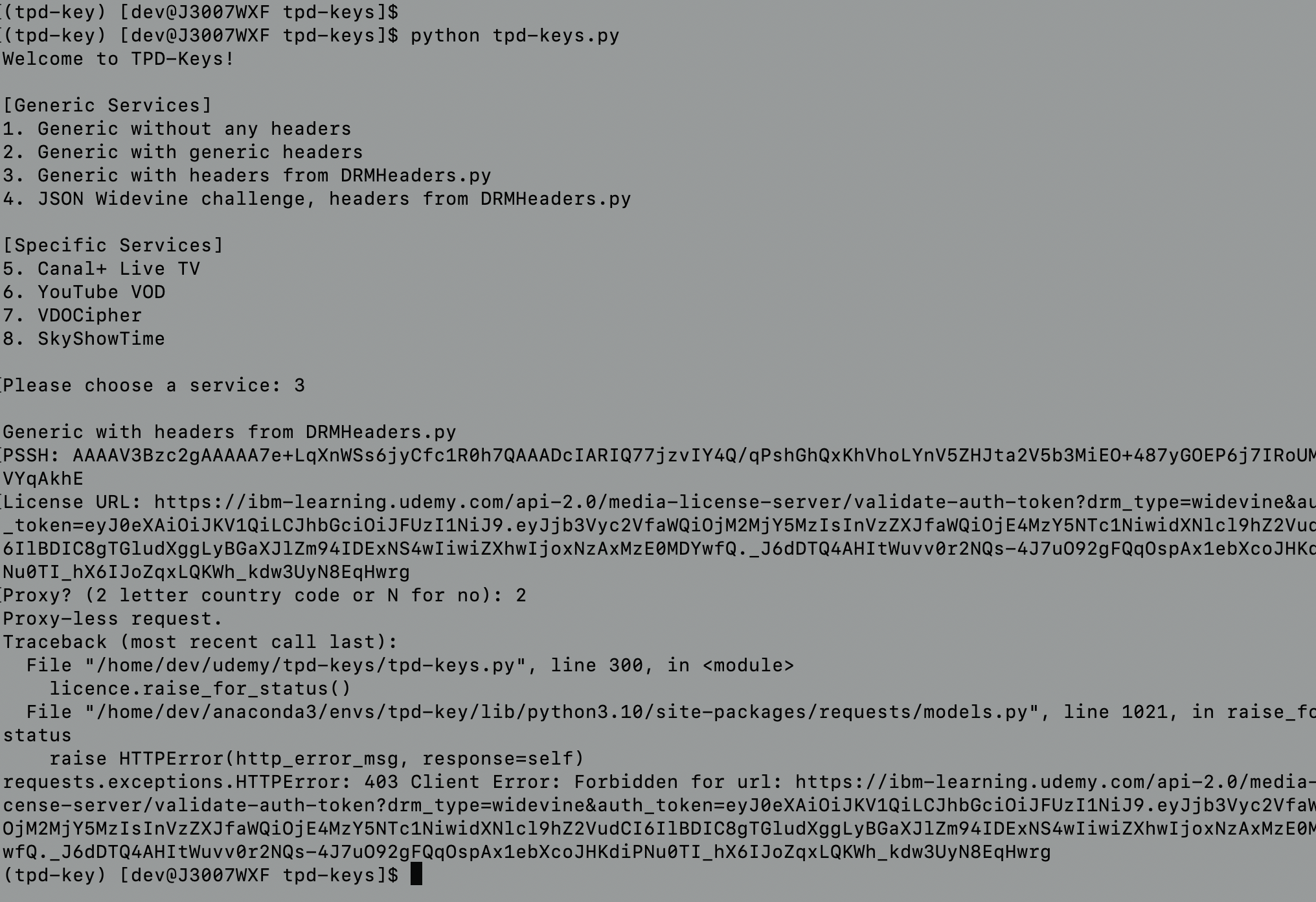 There are tutorials in here how to get a CDM, I guess for udemy people suggest a device cdm but android could also work. Once you got the cdm make a .wvd out of it and make a small script with the example shown here. https://github.com/devine-dl/pywidevine
