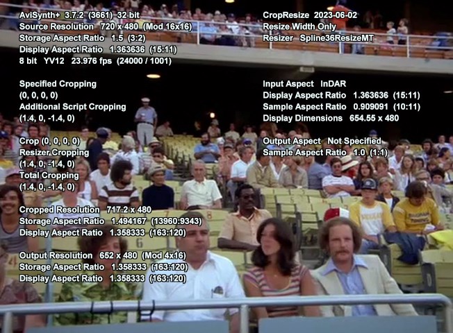 For 15:11 the width ends up a little wider, although the script has also cropped a couple of pixels so as to resize to mod4 dimensions without aspect error (652x480). It calculates the resizing and cropping based on any input DAR you tell it to use though, so cropping and resizing without aspect error means "according to the specified input DAR".
