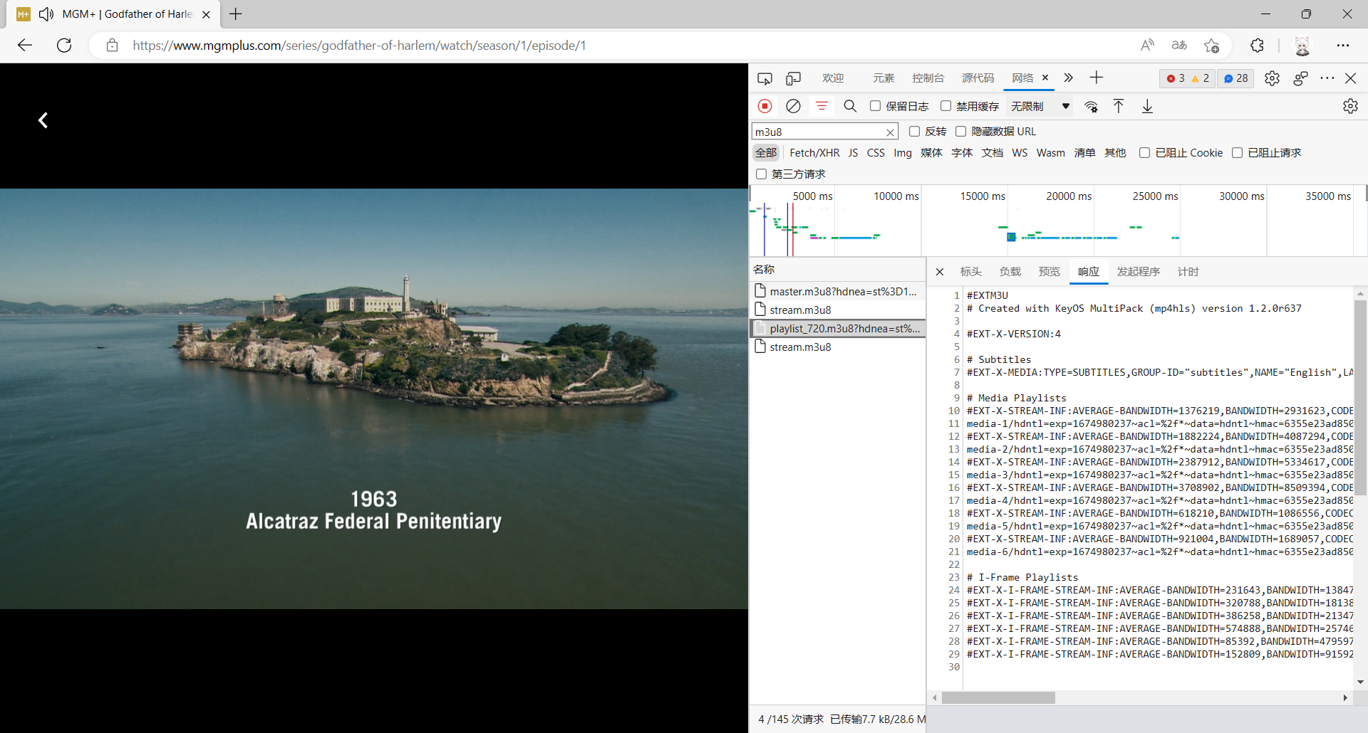 never tried mgm+ so, yes maybe edge found an m3u8 that other browsers do not display. and maybe isn't encrypted