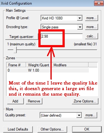 Any particular reason to use XviD instead of h.264 for final output? Xvid and the like is kinda antiquated and there is not much reason for using it over better formats unless you want to play the files back on some device that supports that but not later formats.