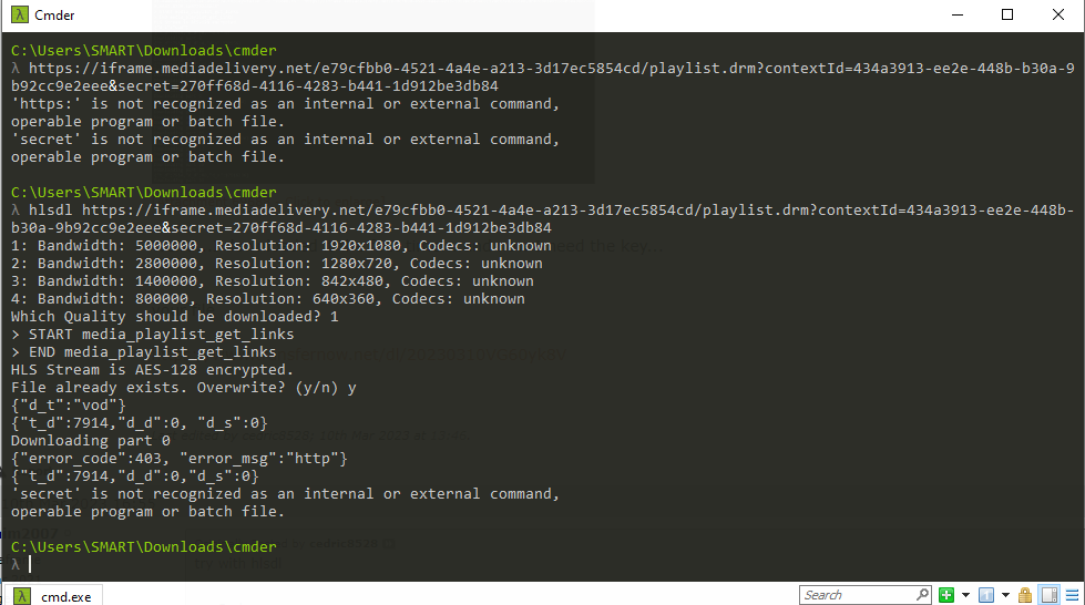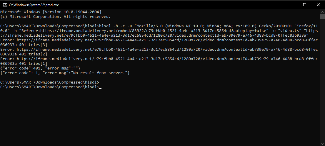 I downloaded hlsdl and i opened cmd on the file and i copied the command and pasted and it gave me that! -