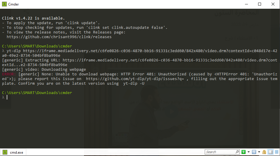I downloaded Cmder and i had gave it this command "another video" and it gave me this ERROR