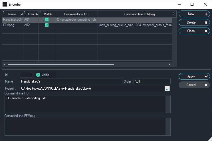 For information the program currently allows to encode with HandBrakeCli and soon with FFMpeg.