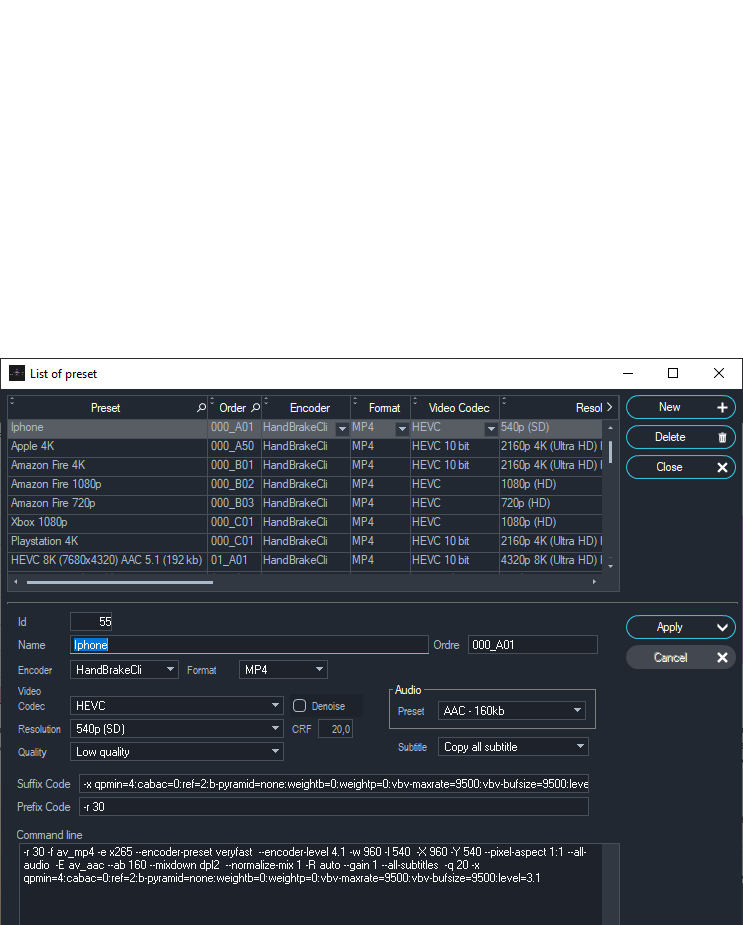 Many presets are included by default: iPad, Apple TV, Amazon Fire, Xbox One, Android, YouTube, Facebook and many more.