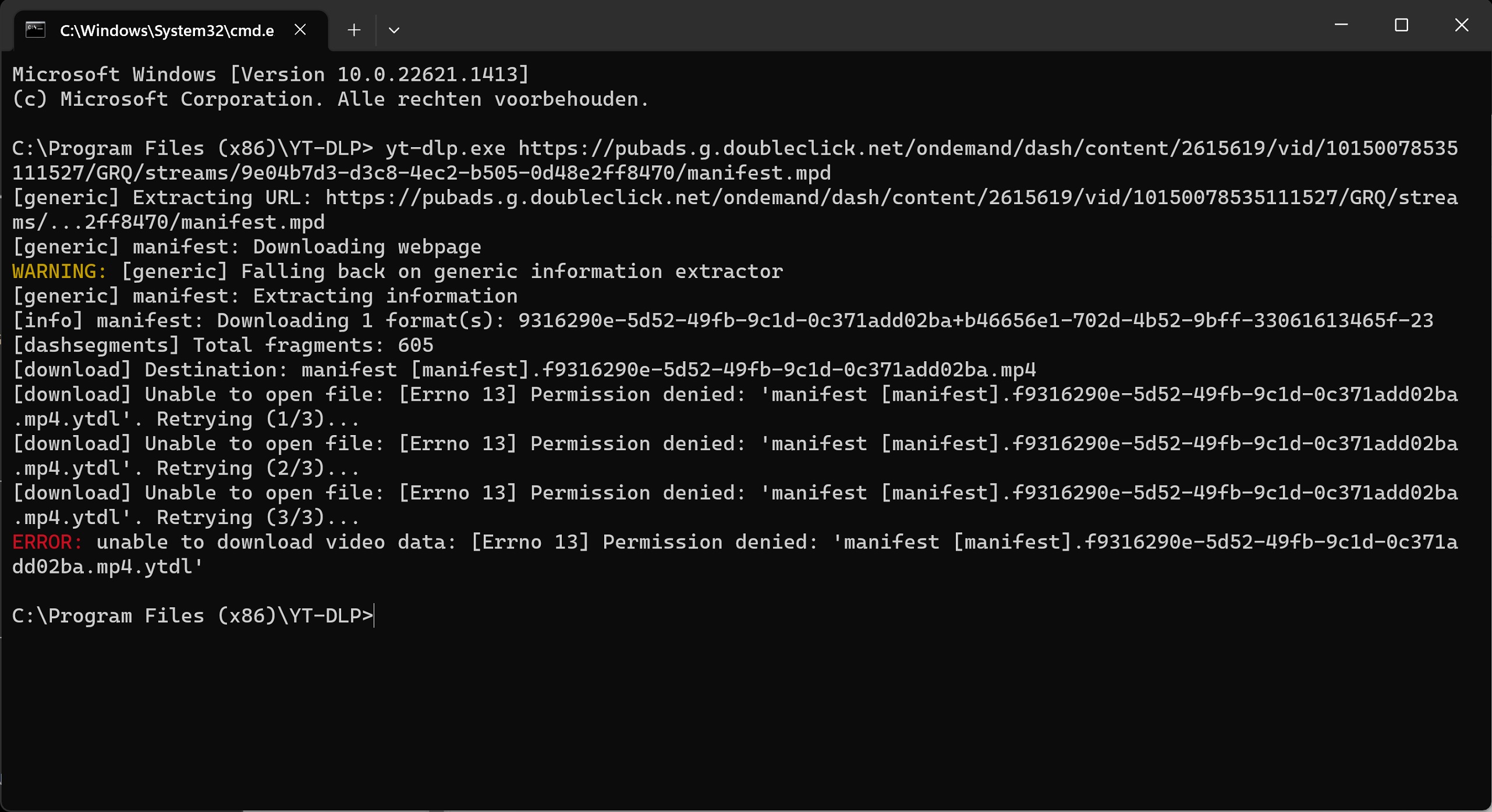 Code:yt-dlp "MPD URL" -P C:\path\to\wherever