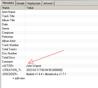 Thanks, I'll give it a look. However, Matroska does support the 'Actor' tag, search the page for 'Actor':