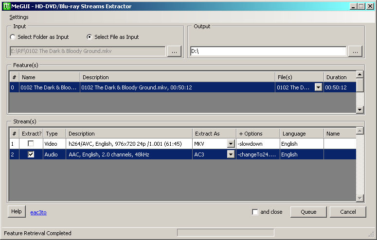"C:\MeGUI\tools\eac3to\eac3to.exe" "E:\video.mkv" 1:"D:\video_T1_Video - English.mkv" -slowdown -progressnumbers