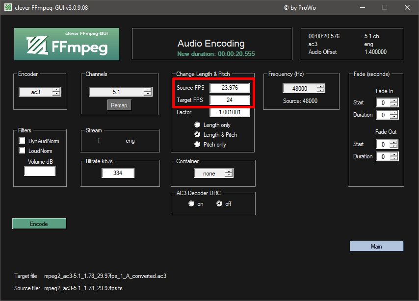 I have a 4K BD remux, so I need to first convert the audio from 23.976 to 24fps and then trim 10 seconds at the beginning. But now to sort out the fps first.
