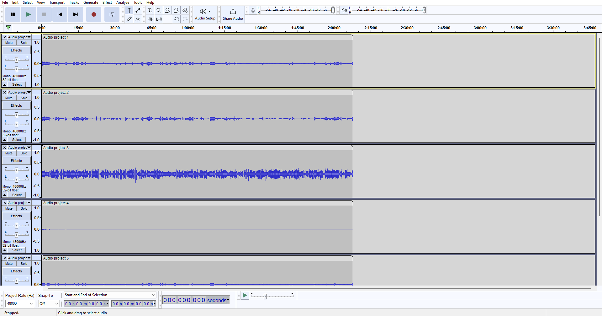 Hi, please advise, I have a 5.1 audio track open in Audacity where I need to trim the beginning of about 10 seconds. If I trim the first channel, do I need to re-cut the other 5 audio channels separately or is there a function in Audacity to do this?