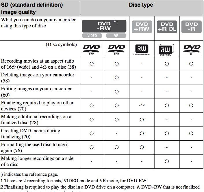 *I don't know the rule Sony uses to determine which of the modes DVD-RW uses, but would expect that the default would be the VR mode (for that disc), as am pretty sure that is the only time that that mode is possible (as it isn't possible with the other disc types).
