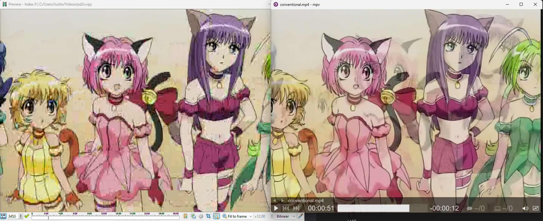 Yeah, I knew of DPIR for a while but never gave it a shot until now. It's done quite a good job! Sadly the blocking in the intro is still quite apparent but it's somewhat better. However, what do you mean about compositing back the details from a weaker filter layer/neighboring frames?