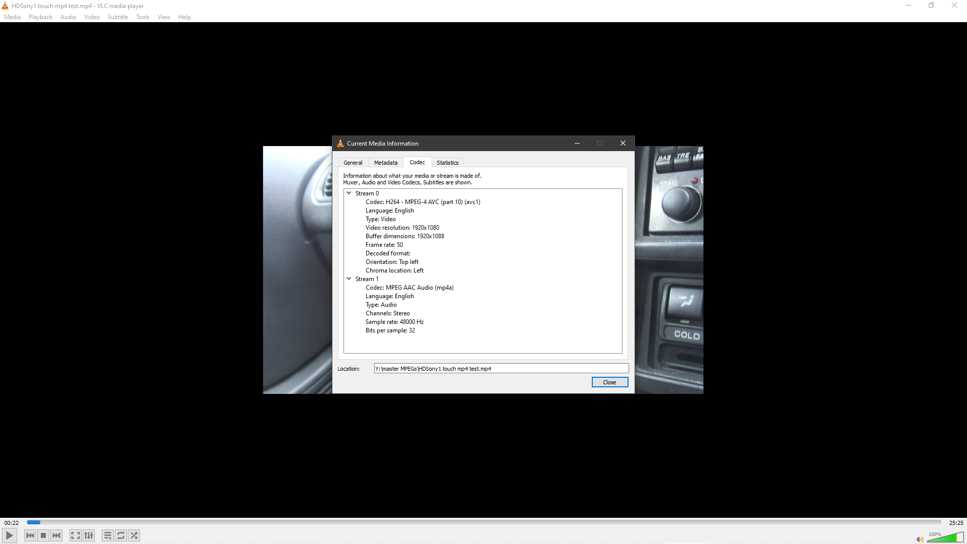Video: 25 fps, 1920x1080 Progressive, YUV, 12 Mbps