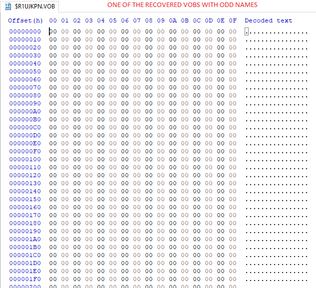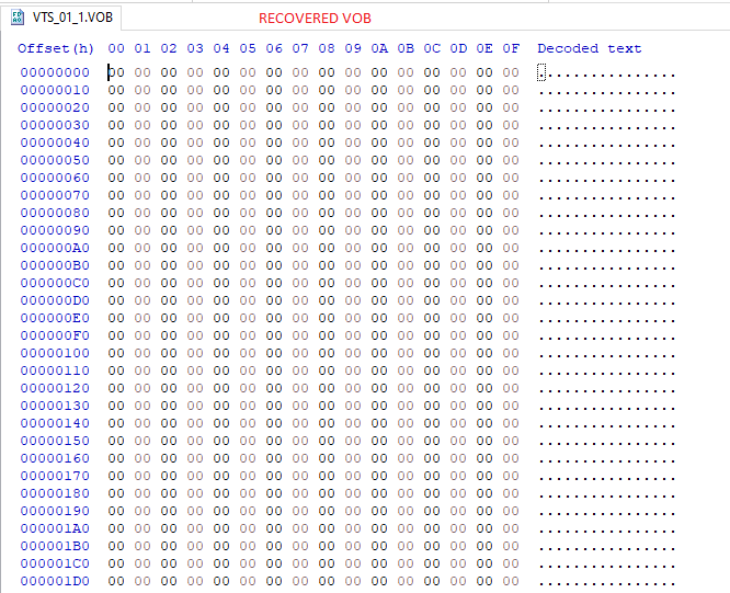 When i tried a recovered vob, nothing, no information just all zero's!!