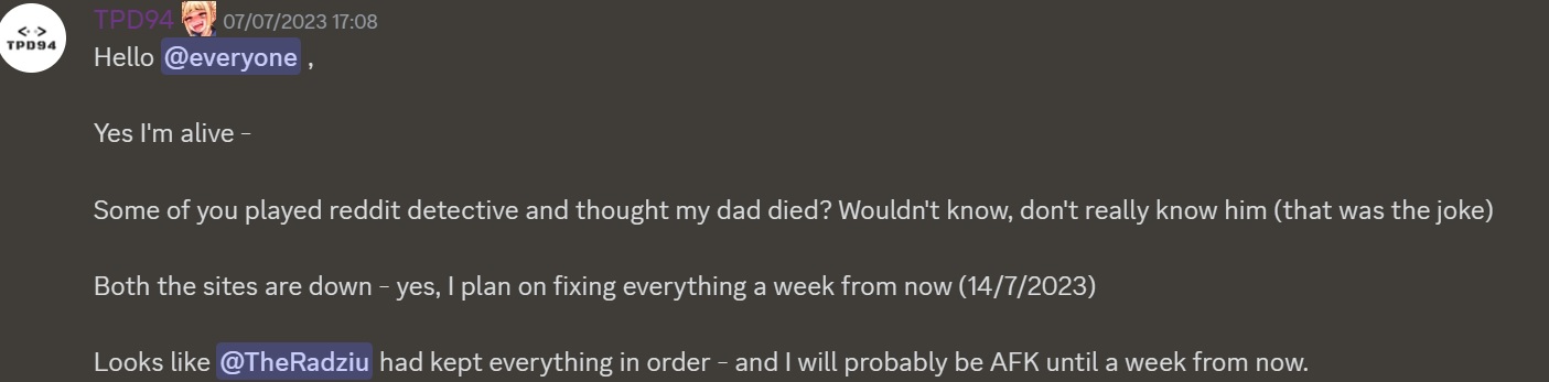 - TPD49: The automated bot that provides a database copy on the Discord Channel of cdrm-project has been out of action since a week after this thread was started. TPD94, the owner of cdm and cdrm projects knows it is out of action.