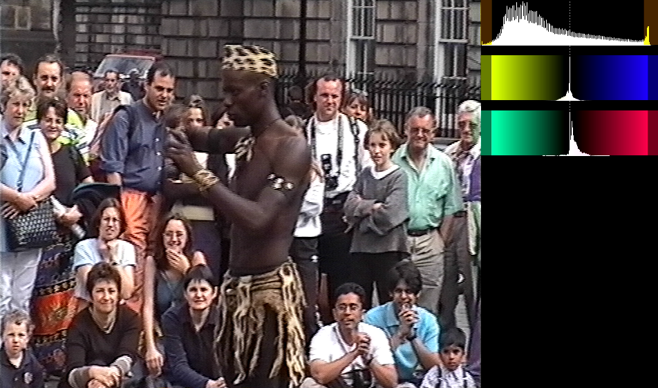 The picture is clean, detailed and sharp. TTF interlaced fields architecure. The levels do not show evident crush of the blacks nor clipping of the whites You may need to reduce the range to 16-235 for processing involving RGB conversion, or at the end of the processing.