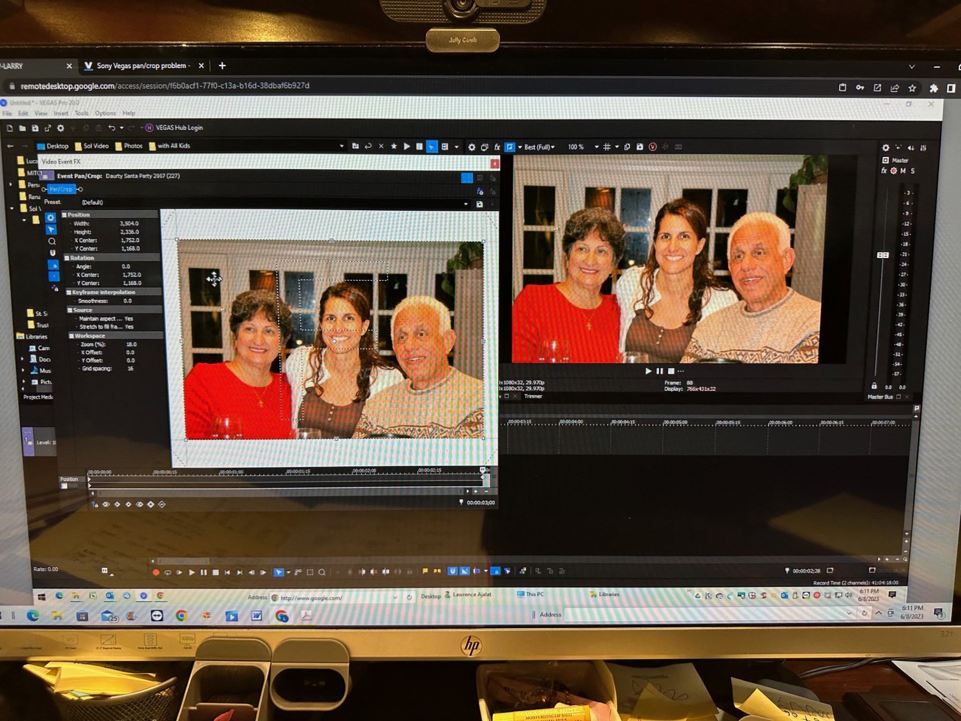 I just purchased Vegas Pro 20 to prepare a video for my father's memorial. I have used Vegas in the distant past, when I knew it as Sony Vegas . . . I'm familiar with the Pan/Crop feature and used it a lot. However, I'm having an issue now and I just can't figure out what the problem is . . . When I try to pan/crop a photo, the output is not matching what the feature says it should . . . See the photos below. The first photo, there's no modification and everything is fine. But in the second, you see that the output doesn't match the crop, and in fact it added the right side of the photo on the left side of the output. And in the last photo, the output should be just showing my sisters lower fact, but the output is showing the top of her head.