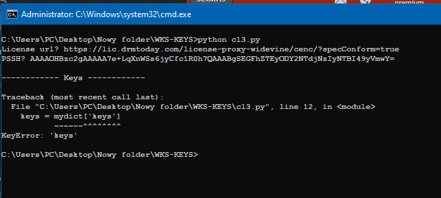 Code:""" Credit to @sk8ordi3 & @A_n_g_e_l_a for providing api url(s) Requirements: Python 3.7+ N_m3u8DL-RE ffmpeg or mkvmerge mp4decrypt or shaka-packager Install necessary packages: pip install pyperclip uncurl beautifulsoup4 Download: cdl.py --download --file filename Proxy: cdl.py --proxy 123.456.789.10:8080 Notes: Written on Linux but should work on all systems. Downloads are found in /downloads folder. N_m3u8DL-RE options can be adjusted in the download_stream function (line: 103) !Windows users! Do not use "copy as cURL(windows)" when curling the license. """ import argparse import sys import requests import re import base64 import pyperclip import uncurl import subprocess from pathlib import Path from bs4 import BeautifulSoup as bs def cURL() -> tuple: paste = pyperclip.paste().replace(" \\\n", "").replace("^", "") paste2 = re.sub(r"--data-raw.*", "", paste) context = uncurl.parse_context(paste2) headers = dict(context.headers) lic_url = context.url return headers, lic_url def get_kid(mpd_url: str) -> str: response = requests.get(mpd_url) if response.status_code != 200: raise ValueError(f"Failed to fetch manifest") match = re.search(r'default_KID="(.+?)"', response.content.decode('utf-8')) return match.group(1) if match else None def generate_pssh(kid: str) -> str: array_of_bytes = bytearray(b'\x00\x00\x002pssh\x00\x00\x00\x00') array_of_bytes.extend(bytes.fromhex("edef8ba979d64acea3c827dcd51d21ed")) array_of_bytes.extend(b'\x00\x00\x00\x12\x12\x10') array_of_bytes.extend(bytes.fromhex(kid.replace("-", ""))) return base64.b64encode(bytes.fromhex(array_of_bytes.hex())).decode('utf-8') def get_pssh(mpd_url: str) -> str: try: kid = get_kid(mpd_url) pssh = generate_pssh(kid) except: print("\nPSSH cannot be generated from manifest. Please input manually") pssh = input("PSSH: ") return pssh def get_tokens(headers: dict) -> list: try: token_pairs = [ (key, value) for key, value in headers.items() if isinstance(value, str) and (value.startswith("ey") or value.startswith("Bearer")) ] tokens = [token for pair in token_pairs for token in pair] return tokens except: return None # Use this to make adjustments to license, headers, cookies, proxy etc. def addons(lic_url: str) -> str: if "drmtoday" in lic_url and lic_url.endswith("/cenc/"): lic_url = f"{lic_url}?specConform=true" return lic_url def parse_response(response: str) -> tuple: soup = bs(response, "html.parser") h2_tag = soup.find("h2") result = h2_tag.text if h2_tag else None error = h2_tag.text if result == "ERROR" else None p_tag = soup.find("p") if error else None error_message = p_tag.text.split("\n")[1] if error else None ol_tag = soup.find("ol") keys = ol_tag.text.strip() if ol_tag else None return result, keys, error_message def download_stream(mpd_url: str, file: str, keys: str): try: args = [ 'N_m3u8DL-RE', '--key', keys, mpd_url, '--auto-select', '-mt', '-M', 'format=mp4:muxer=ffmpeg', '--save-name', file, '--save-dir', 'downloads' ] subprocess.run(args, check=True) except: print('Failed downloading stream!') raise def create_argument_parser(): parser = argparse.ArgumentParser(description="General downloader") parser.add_argument( "--download", help="Download the stream", action="store_true" ) parser.add_argument( "--file", help="Filename of video" ) parser.add_argument( "--proxy", help="Use a proxy" ) args = parser.parse_args() return args def main(): parser = create_argument_parser() download = parser.download file = parser.file proxy = parser.proxy if parser.proxy else "" api_url = "https://cdrm-project.com/wv" # pssh = input("\nPSSH: ") mpd_url = input("\nMPD_URL: ") curl = "cURL: Copy the license as cURL and press Enter to continue... " input(curl) headers, lic_url = cURL() lic_url = addons(lic_url) pssh = get_pssh(mpd_url) tokens = get_tokens(headers) if tokens: key, value = tokens headers = f'{key}: "{value}"' else: headers = "User-Agent: Mozilla/5.0 (Windows NT 10.0; WOW64) AppleWebKit/537.36 \ (KHTML, like Gecko) Chrome/102.0.0.0 Safari/537.36" api_headers = { 'Connection': 'keep-alive', 'Content-Type': 'application/json', 'Origin': 'https://cdrm-project.com', 'Referer': 'https://cdrm-project.com/', 'User-Agent': 'Mozilla/5.0 (Windows NT 10.0; WOW64) AppleWebKit/537.36 \ (KHTML, like Gecko) Chrome/102.0.0.0 Safari/537.36', } myjson = { "license": lic_url, "headers": headers, "pssh": pssh, "buildInfo": "", "proxy": proxy, "cache": True } r = requests.post(api_url, headers=api_headers, json=myjson).text result, keys, error_message = parse_response(r) print(f"\n{result}") if result == "ERROR": print(f"\n{error_message}") sys.exit(1) else: print(f"\n--key {keys}\n") if download: Path("downloads").mkdir(parents=True, exist_ok=True) if file.endswith(".mkv") or file.endswith(".mp4"): file = file[:-4] download_stream(mpd_url, file, keys) if __name__ == "__main__": main() -