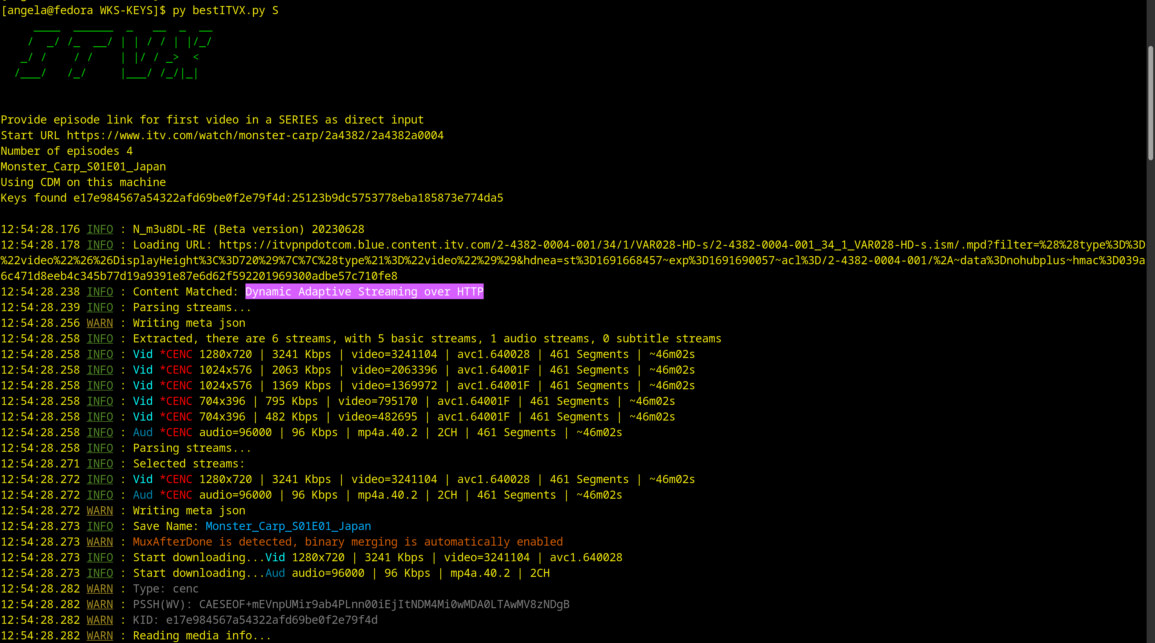 hi this is a fantastic script and i have learned so much from looking through all the different posts here , so big thanks to all the contributers.. ive got this script working with my own cdn dumped from android and it works great .. there is a small issue im facing though.. For example on itvx the TV series Men Behaving Badly it downloads episodes 1 and 2 no issue, and more in the series. but for episode 3 im getting an error.. this is the url https://www.itv.com/watch/men-behaving-badly/10a0549/10a0549a0003 and this is the error im facing